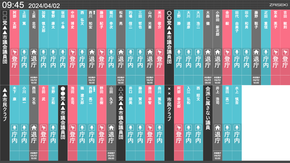 - 議員の登退庁状況をリアルタイムに一目で把握できる!